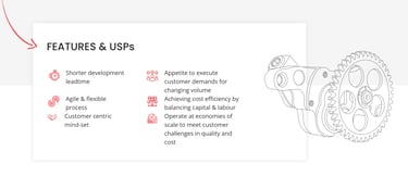 These capabilities enable us to develop and launch new products efficiently, manufacture high-strength components for demanding performance applications, and evolve from producing individual parts to designing and manufacturing complete sub-assemblies. This continuous advancement allows us to move up the value chain and deliver greater value to our customers.
